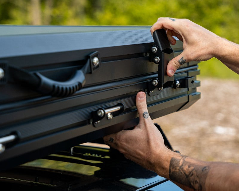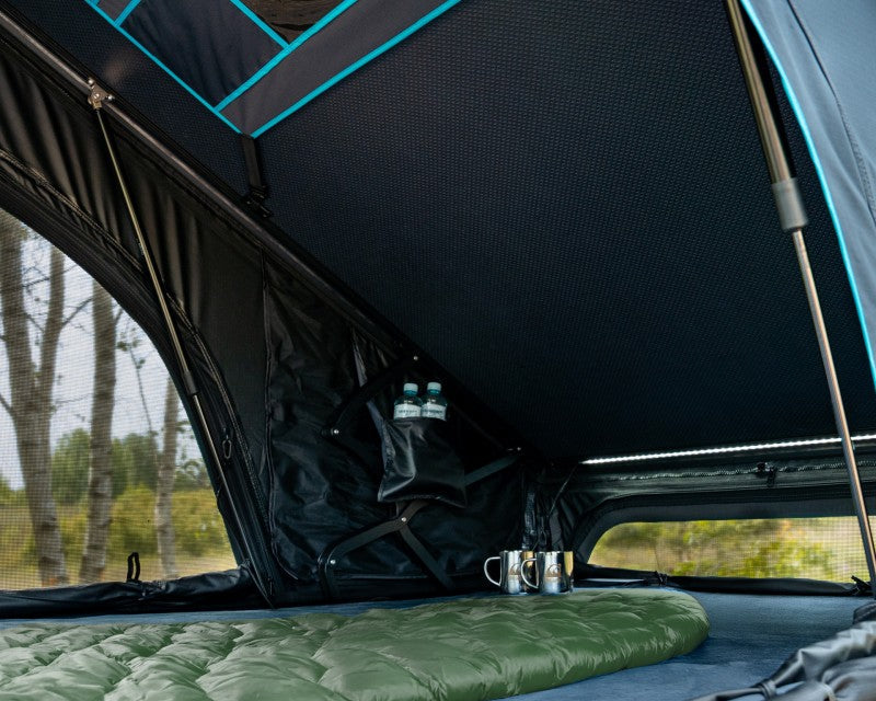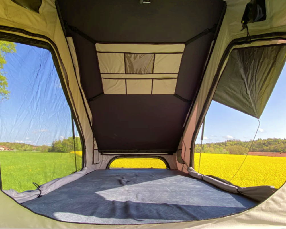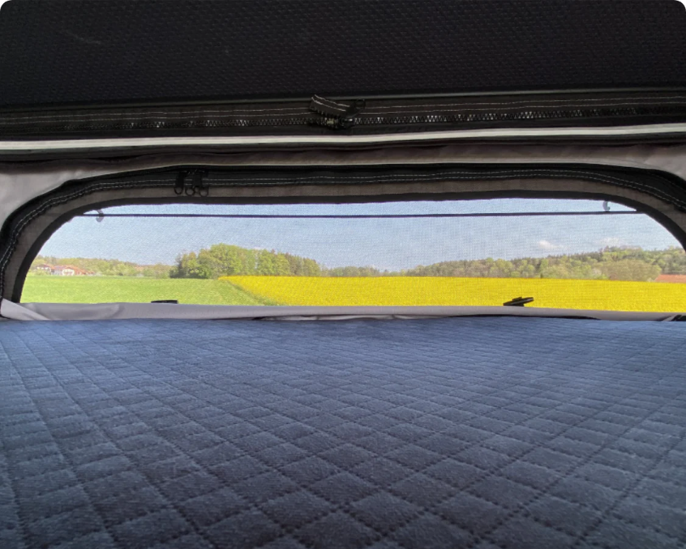Our roof tents can be installed so that the entrance is on the side or above the rear. Of course, wider models can only be installed with the entrance on the side. The APEX fastening system is very flexible, so that the orientation of your tent can be changed later.